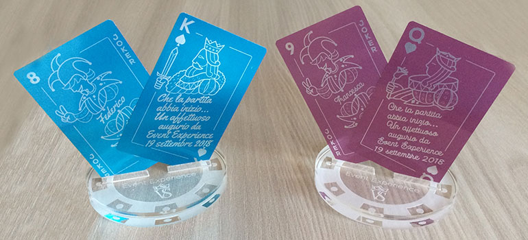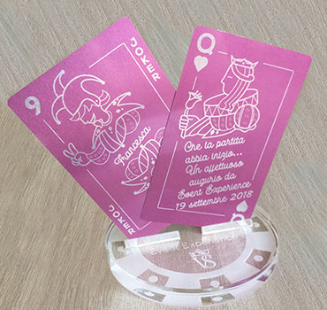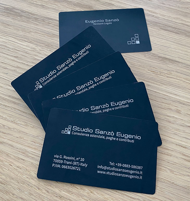 Eleganti, fini, insoliti. Sono i bigliettini da visita in metallo, in particolare, quelli in alluminio anodizzato (nero, blue, rosa, verde e oro). Nel processo di marcatura, il laser asporta l’anodizzazione senza intaccare il materiale che è spesso solo 0,02 millimetri. Questi bigliettini non temono acqua, pioggia o calore, NON sono taglienti e rispetto a quelli in carta, a parità di volume ce ne stanno molti di più in tasca.